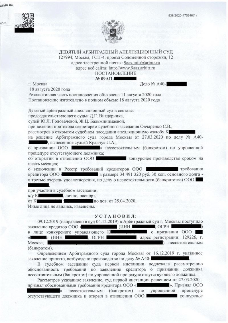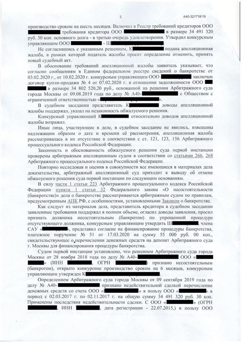 Были найдены основания для отмены решения о признании должника банкротом на том основании, что долг перед подачей заявления о банкротстве был уступлен новому кредитору, а прежний кредитор не имел права на обращение в суд. Подготовлена апелляционная жалоба и подана в арбитражный суд.