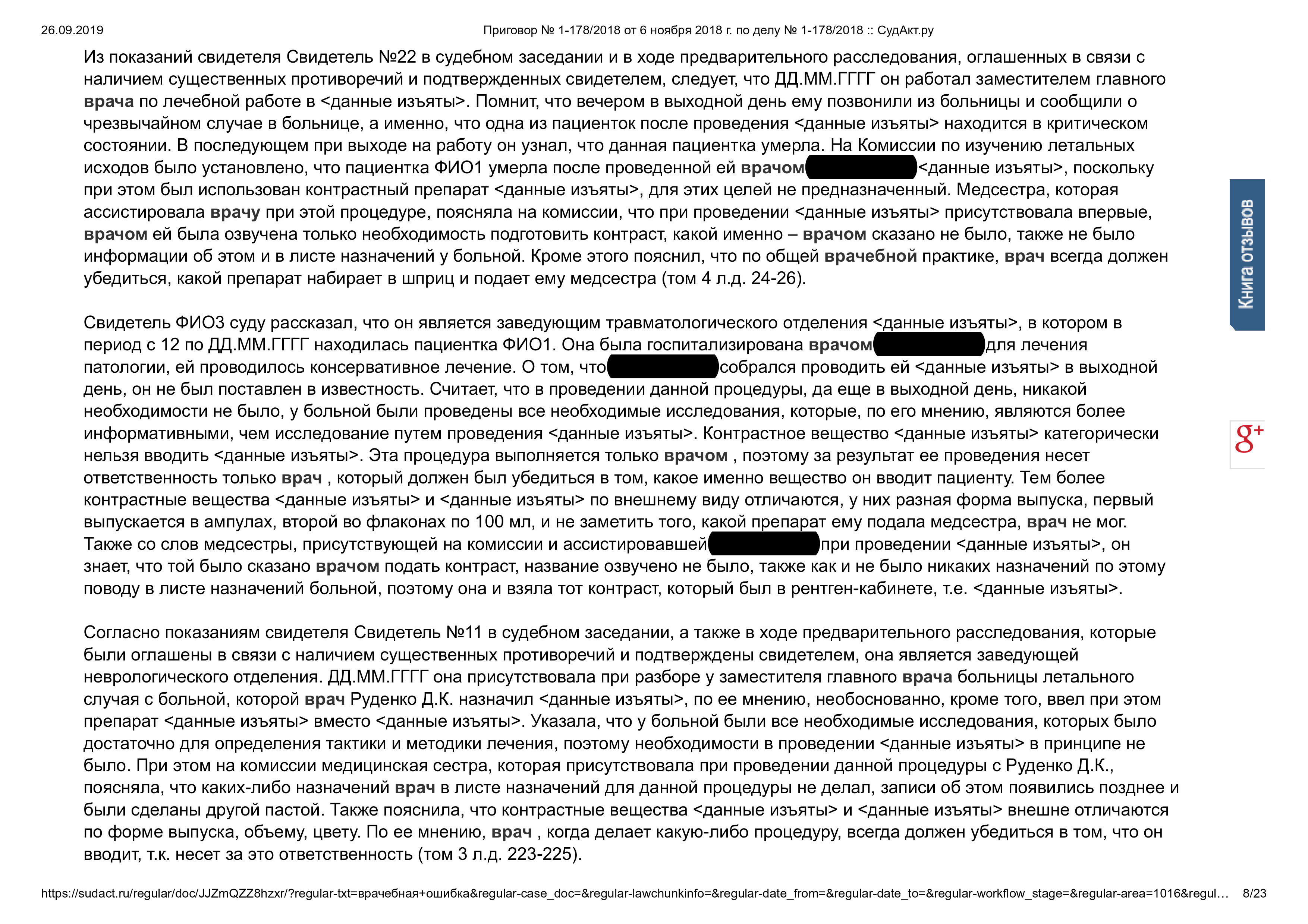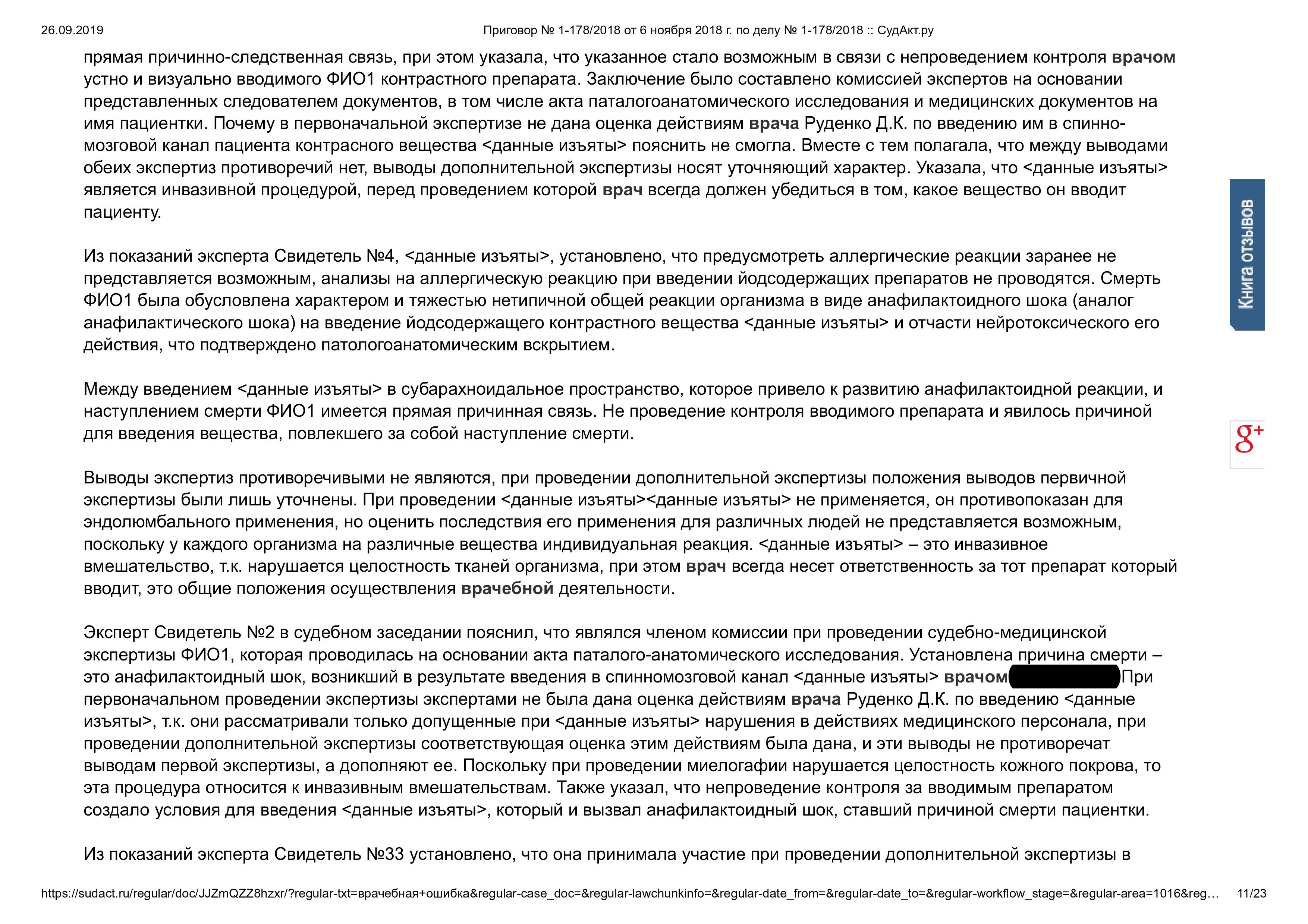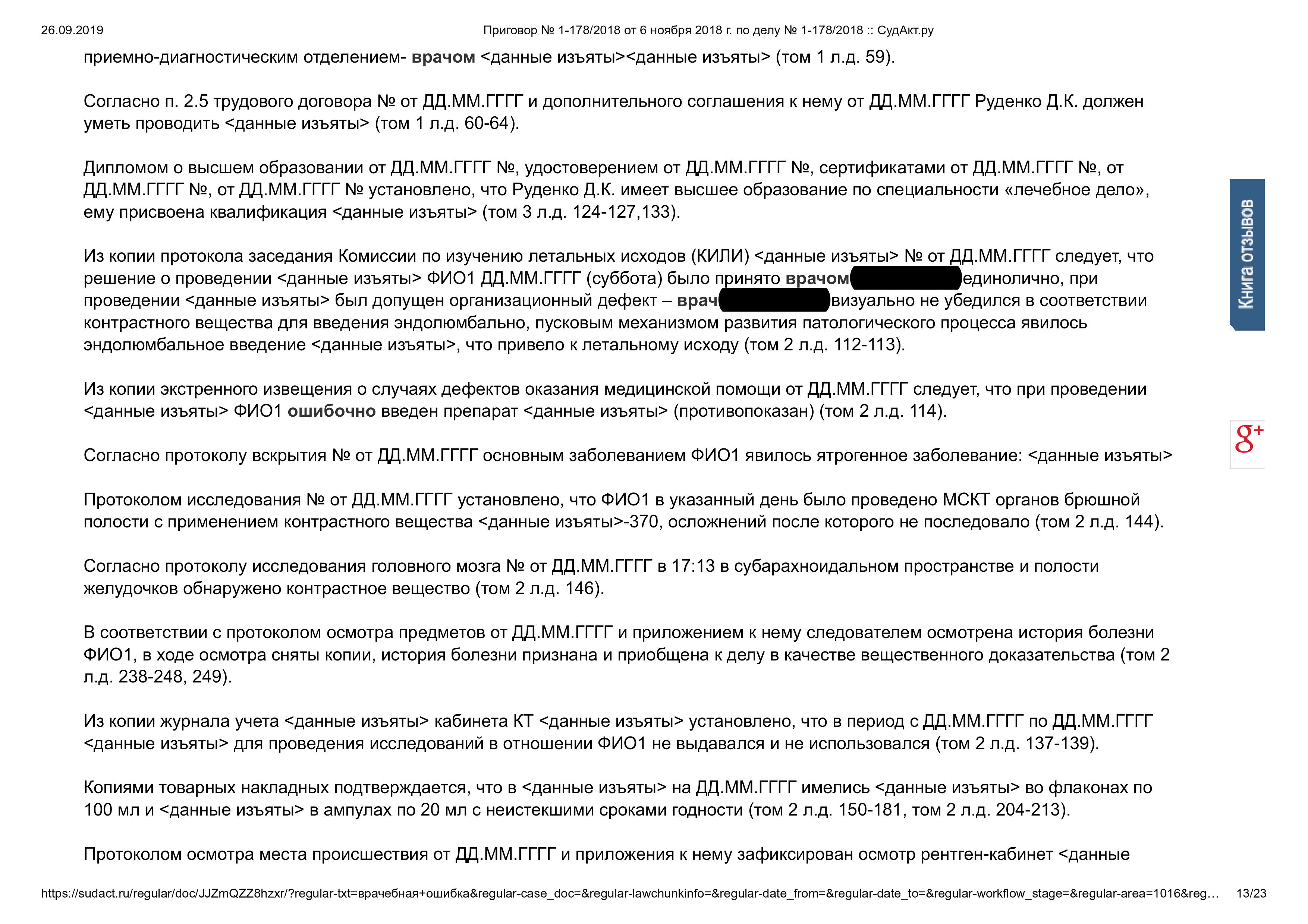 Главное, что нужно было доказать — прямую связь между действиями врача и смертью. Ответственность за введение препарата целиком лежит на враче. Он обязан визуально проверить ампулу и убедиться, что вводит именно то, что назначено.