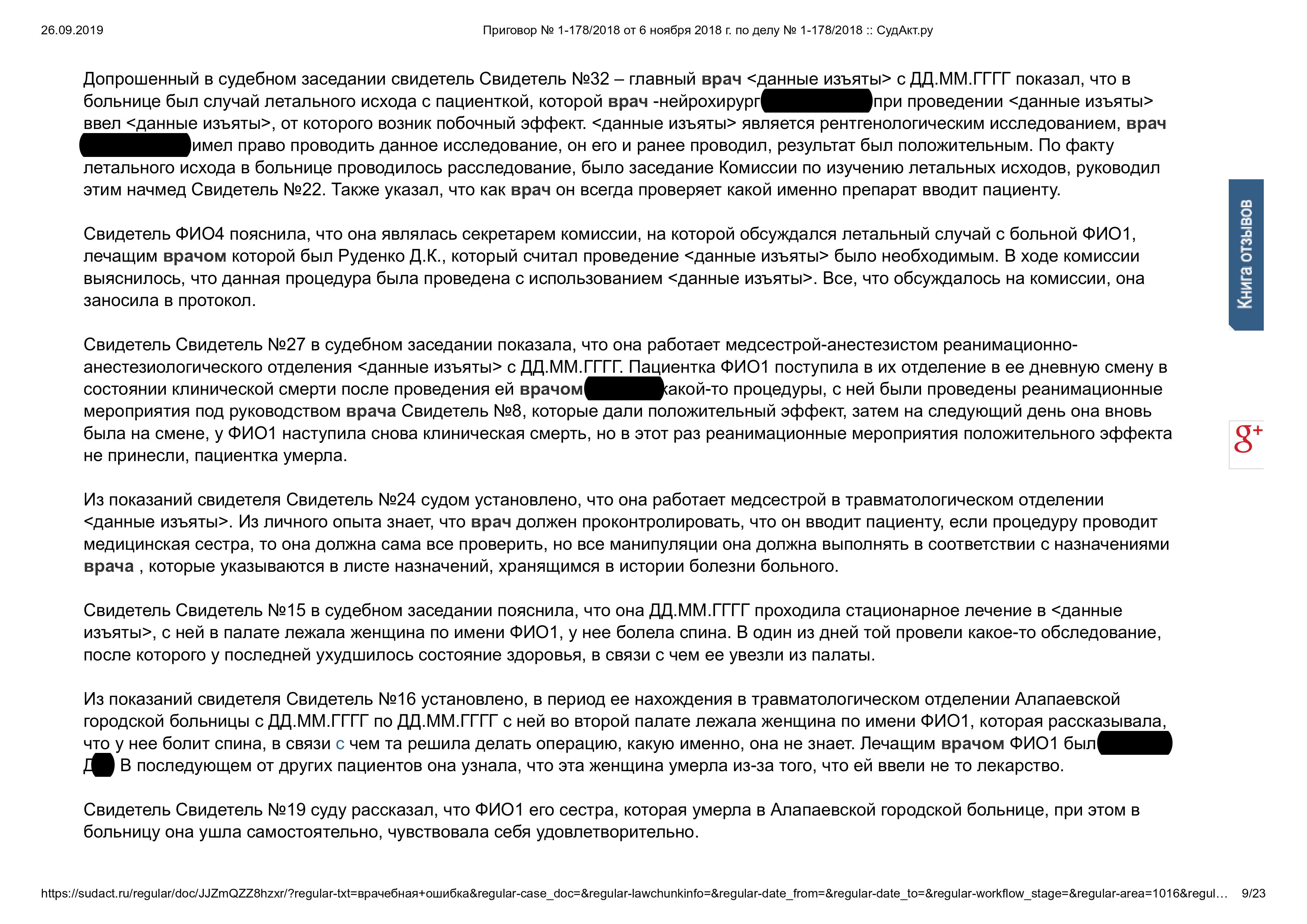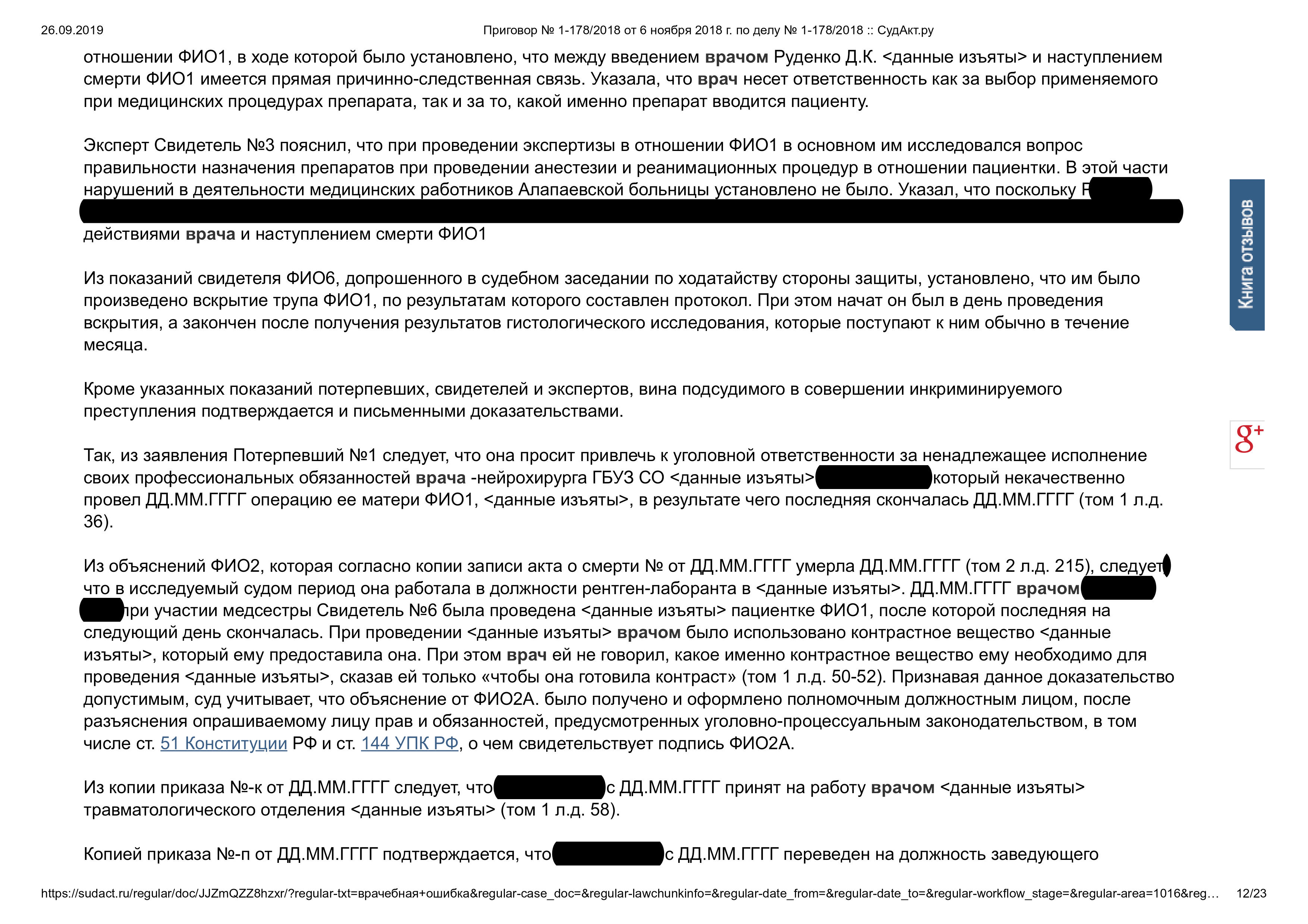 Смерть пациентки из-за врачебной ошибки: уголовная ответственность врача