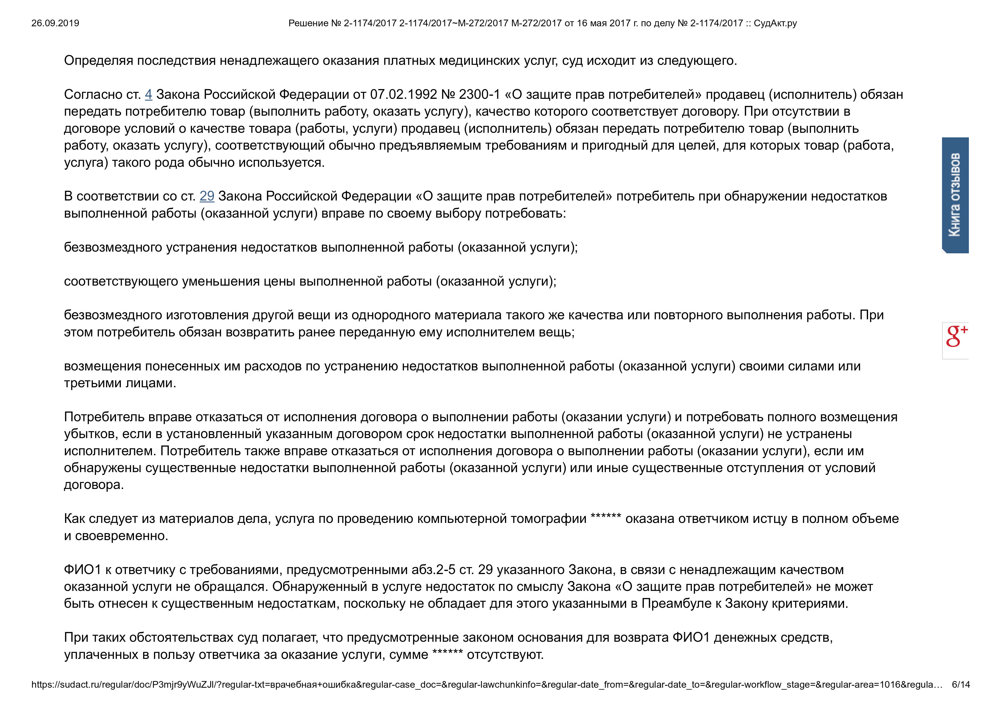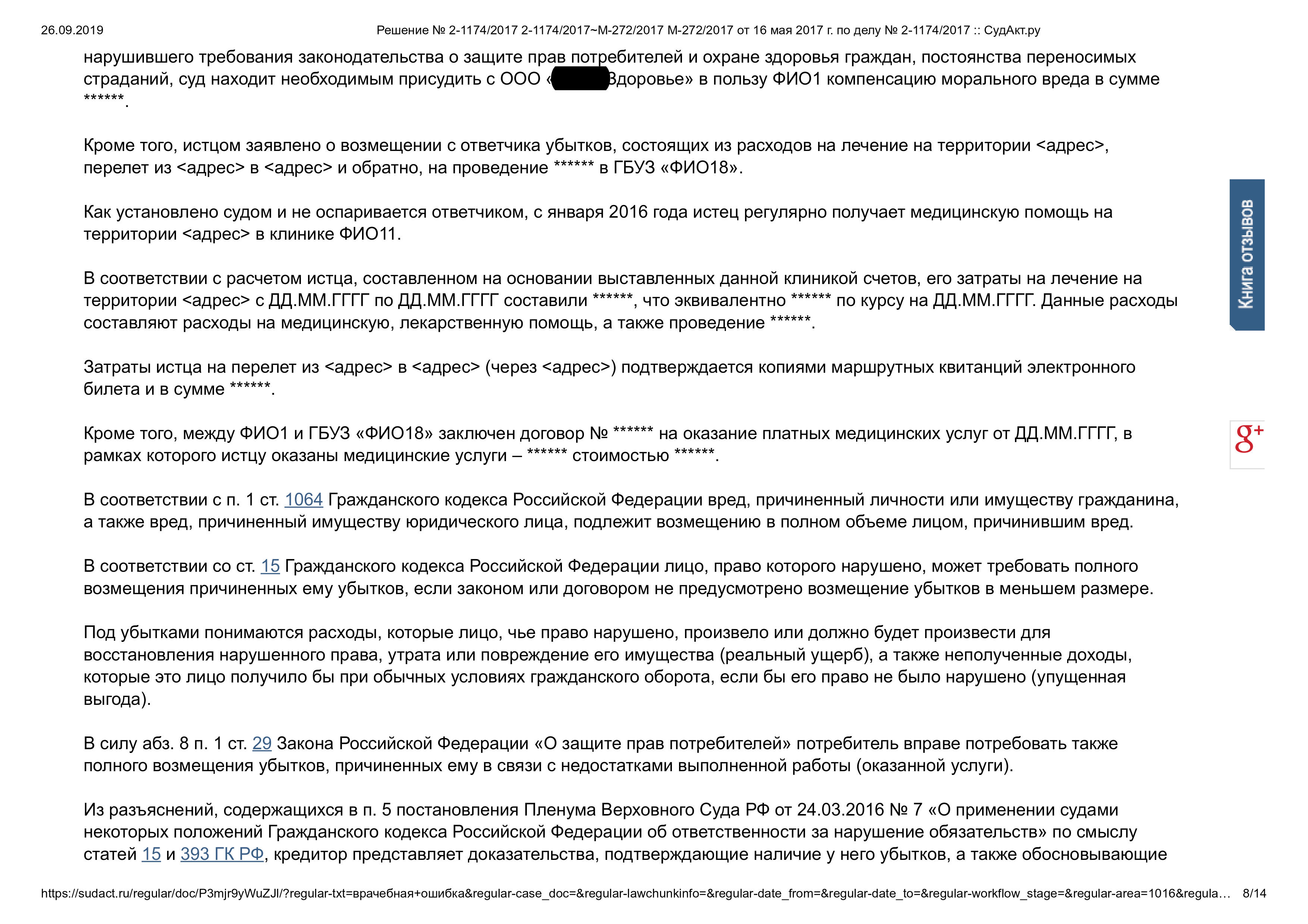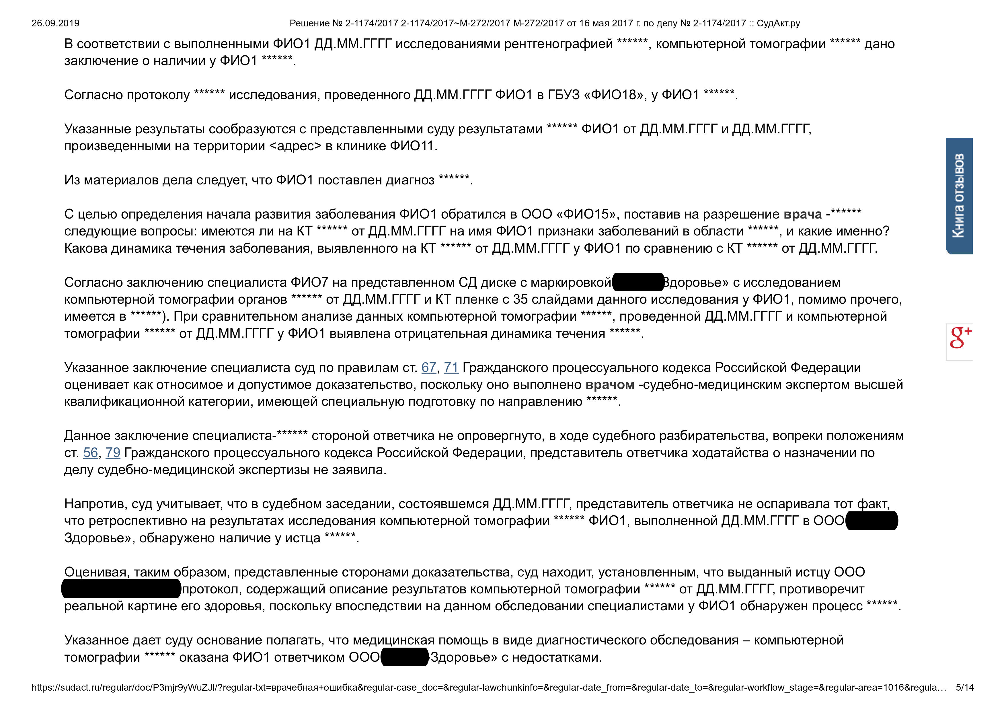 Главным козырем в деле стало заключение независимого специалиста. Оно подтвердило, что услуга была оказана с недостатками, а пациент из-за этого потерял драгоценное время для начала лечения.